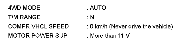 2.Check "4WD MODE", "T/M RANGE", "COMPR VHCL SPEED", "MOTOR POWER SUP" of CONSULT
