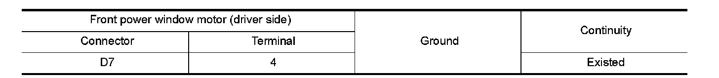 2.Check continuity between front power window motor (driver side) harness connector and ground.