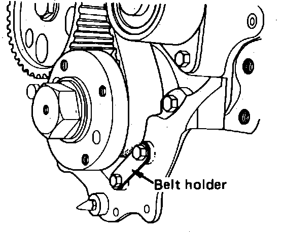 19. Remove crankshaft damper and install timing belt holder.