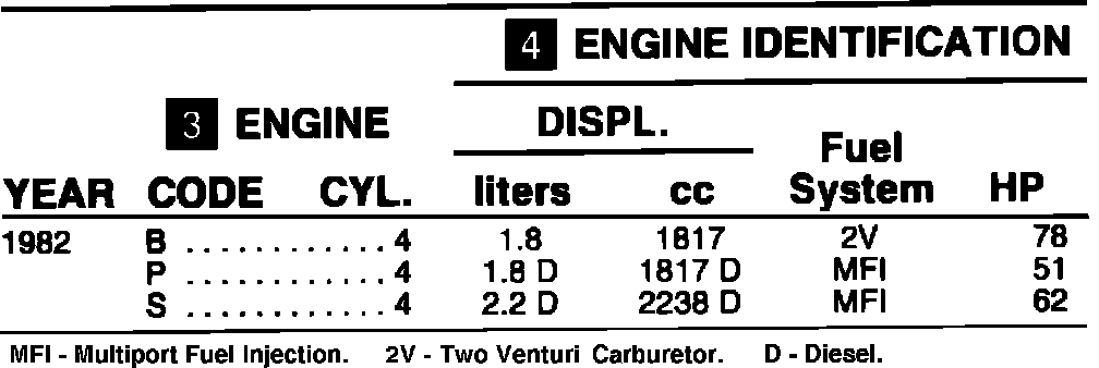 (4)ENGINE IDENTIFICATION: On the line where the engine code appears, read to the right to identify the engine.