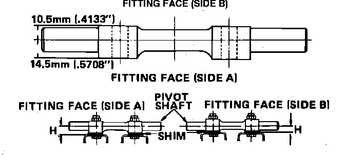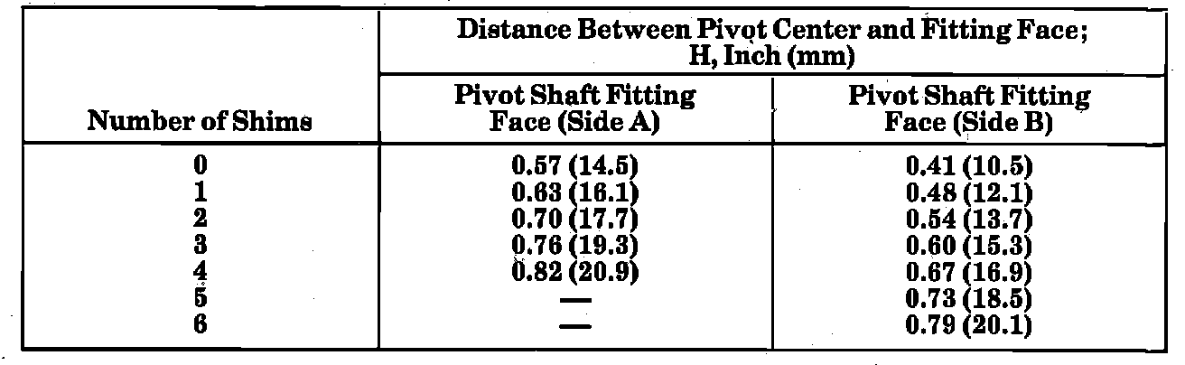 b. The distance between the pivot shaft center and fitting shaft (side A or B) can be adjusted using shims selected by referring to the selection chart, Fig. 4.