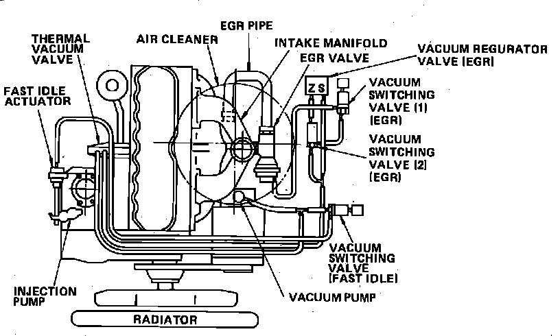 Fig. 7 Emission control vacuum hose routing (EGR system).: