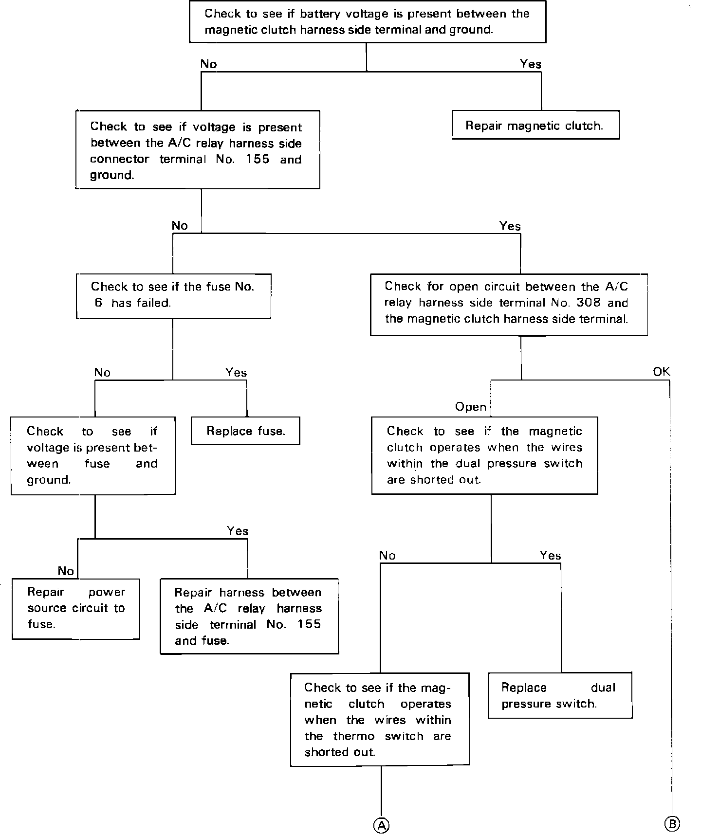 Magnetic clutch will not engage when high side pressure falls below 28 psi or rises above 384 psi.