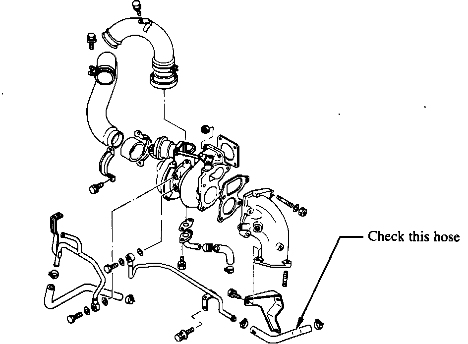 When replacing a turbocharger assembly on an affected vehicle, be sure that the turbo water hose is not kinked (Figure1). If this hose is kinked, it may prevent passage of coolant into the turbocharger cooling system.