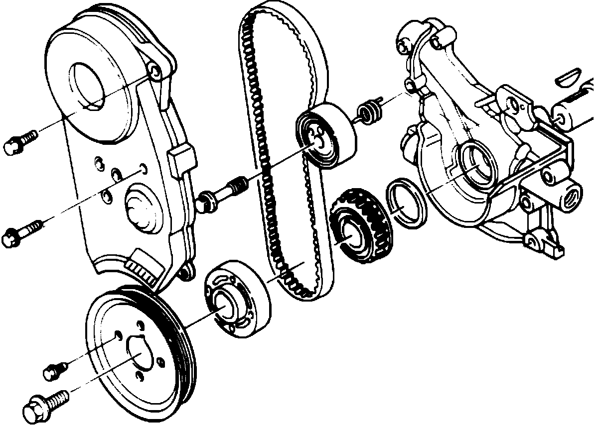 Fig. 14 Timing belt cover, belt & sprocket assembly.: