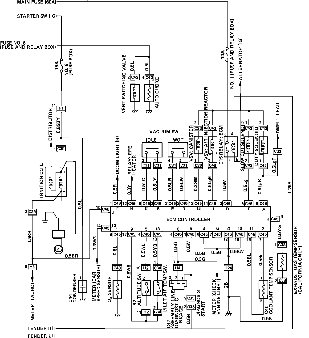 Ignition Coil, ECM Controller & Fuel Pump Wiring Circuit: