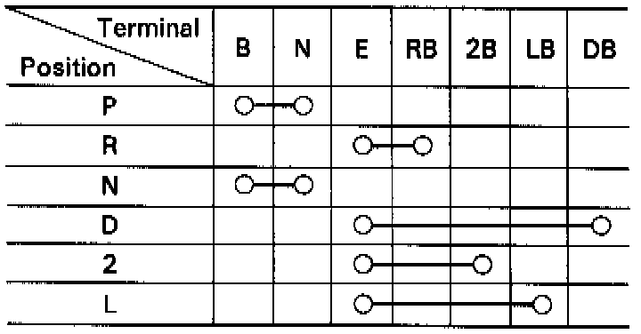 INSPECT NEUTRAL START SWITCHWith a circuit tester, make a continuity test on the neutral start switch with the moving piece set in each position (points in switch case are in the order of P, R, N, D, from the front side).