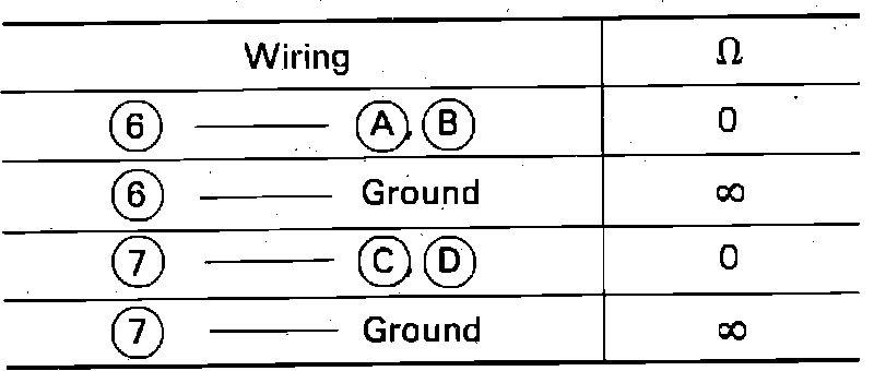 Fig. 73 Fuel injector circuit resistance value chart.: