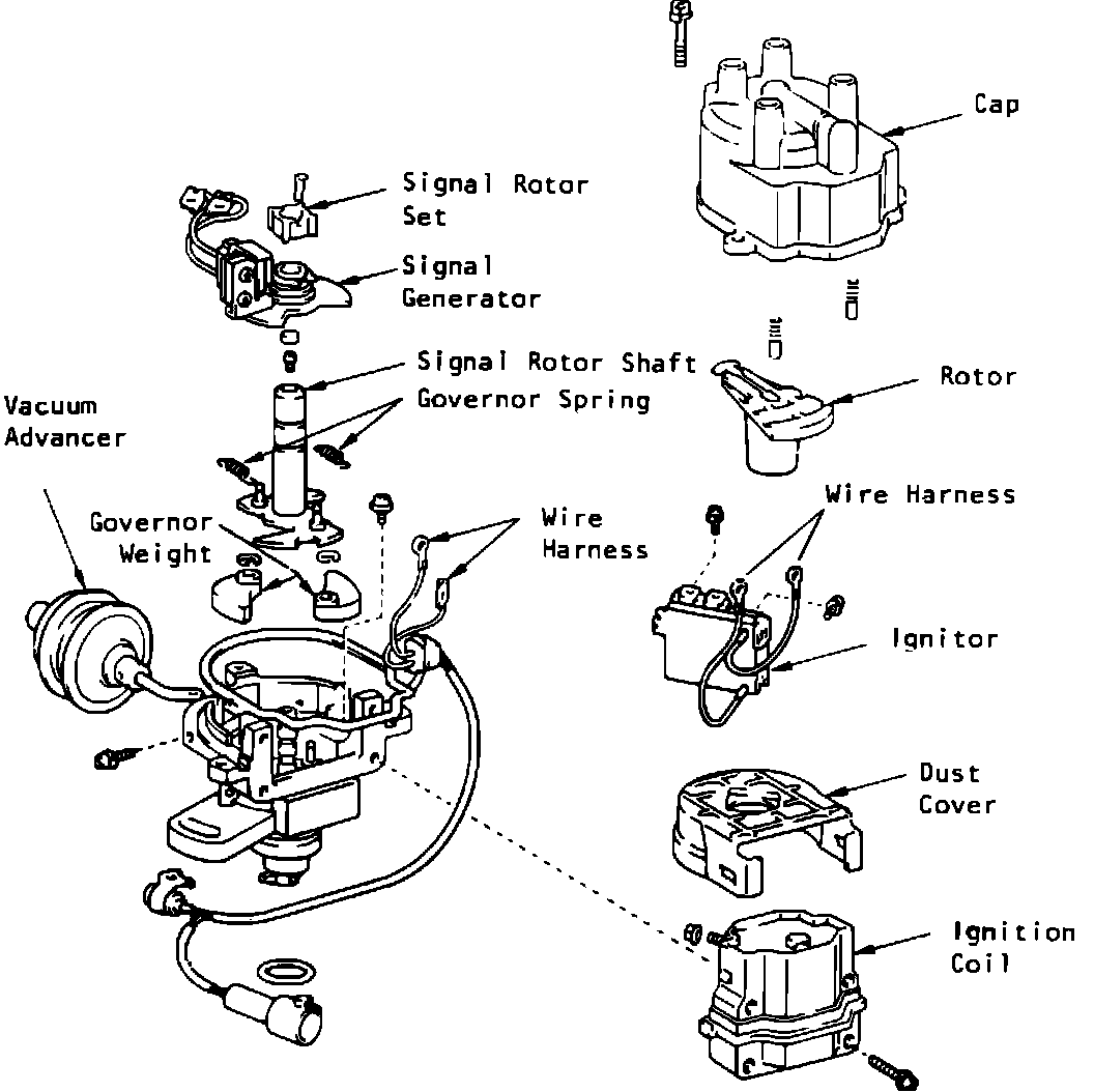 6. Remove vacuum advancer attaching screw, signal generator link and vacuum advancer.