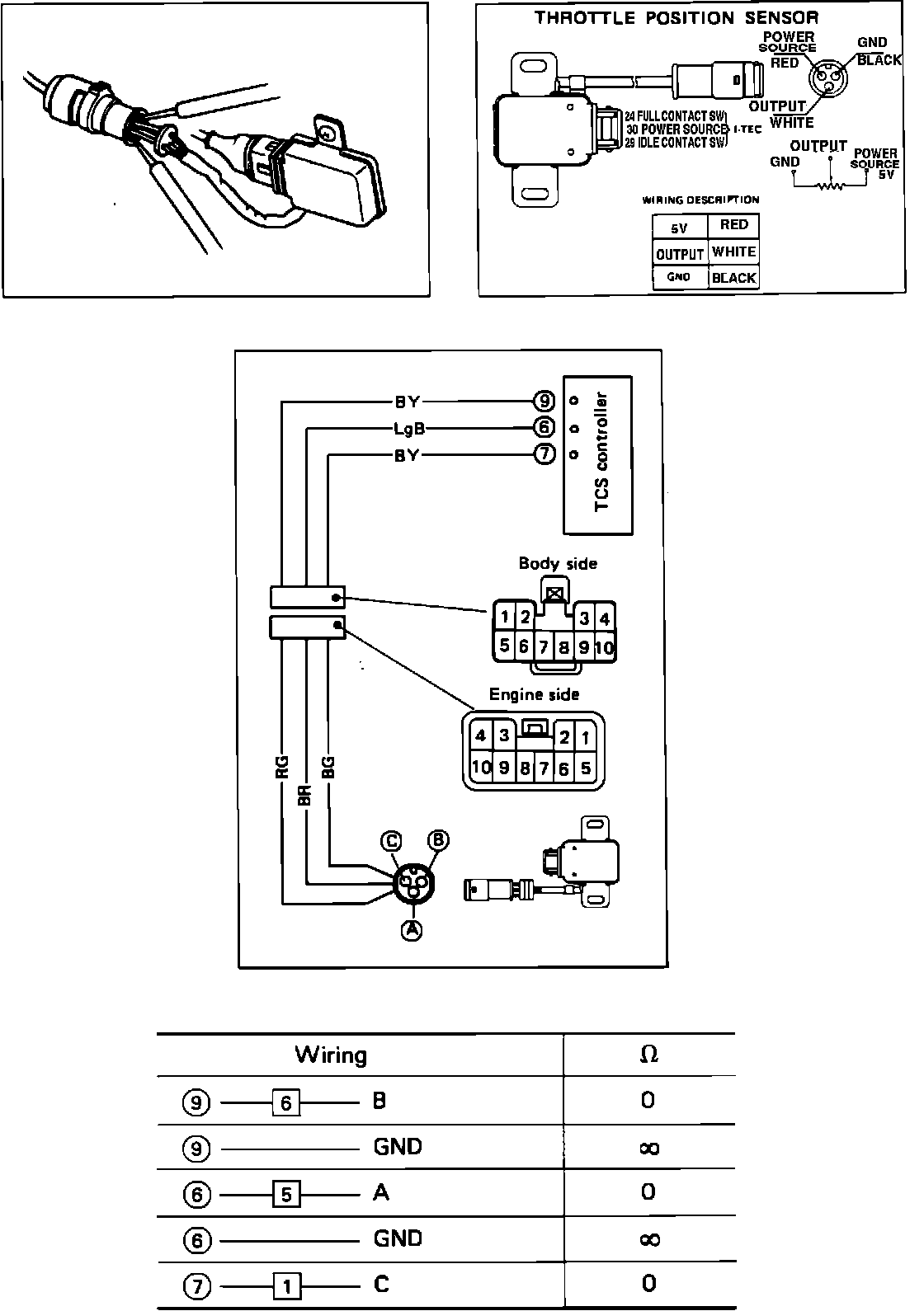 5. Check the harness and connectors between the TCS controller and TPS for shorted or open circuits and faulty terminal connections.