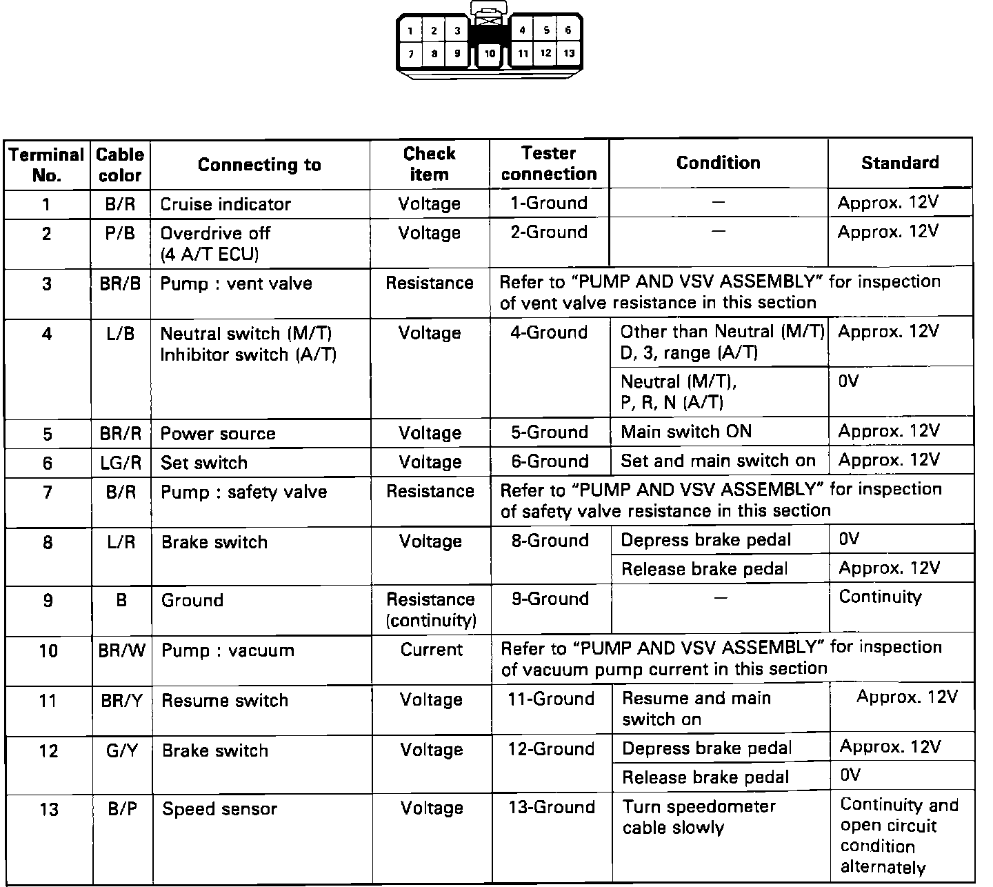 1. Disconnect the cruise controller connector and inspect harness side connector.