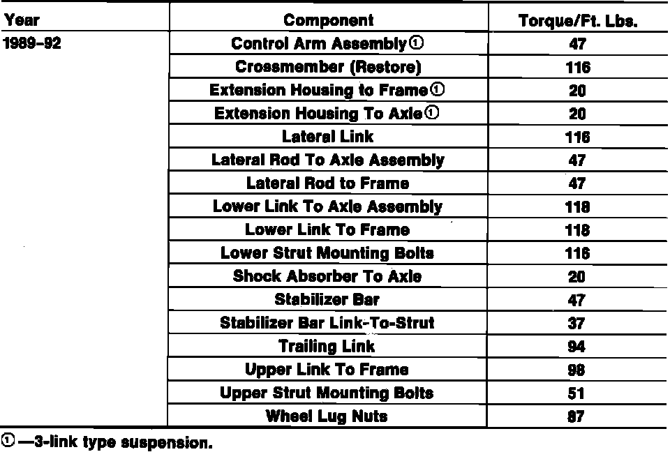 Tightening Specifications: