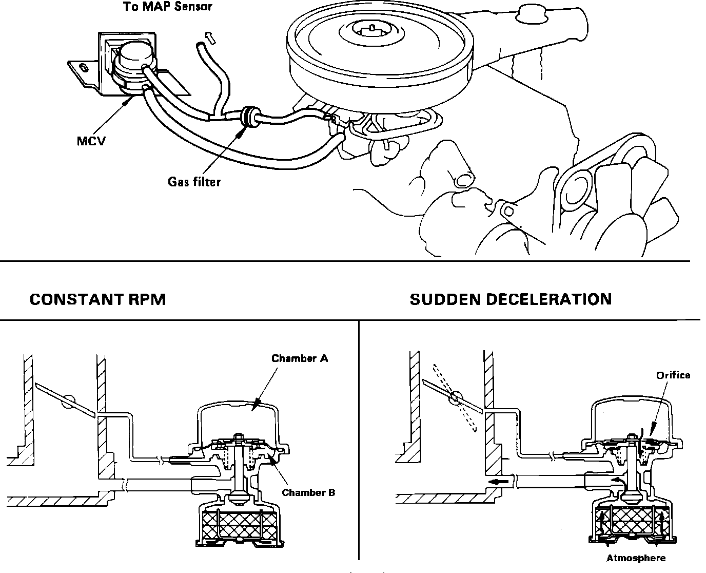 3. Wait a few seconds, then re-connect vacuum hose and release pliers. The engine should stumble for a few seconds then return to normal idle.