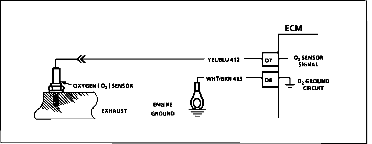 2. Unplug oxygen sensor connector. Connect DVOM between ground and sensor side of connector.