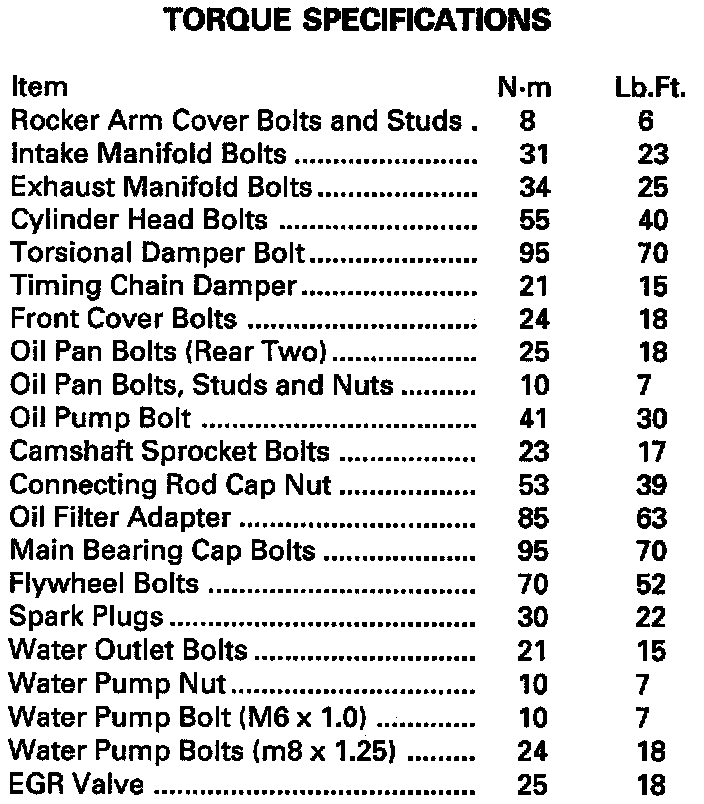 Torque Specifications