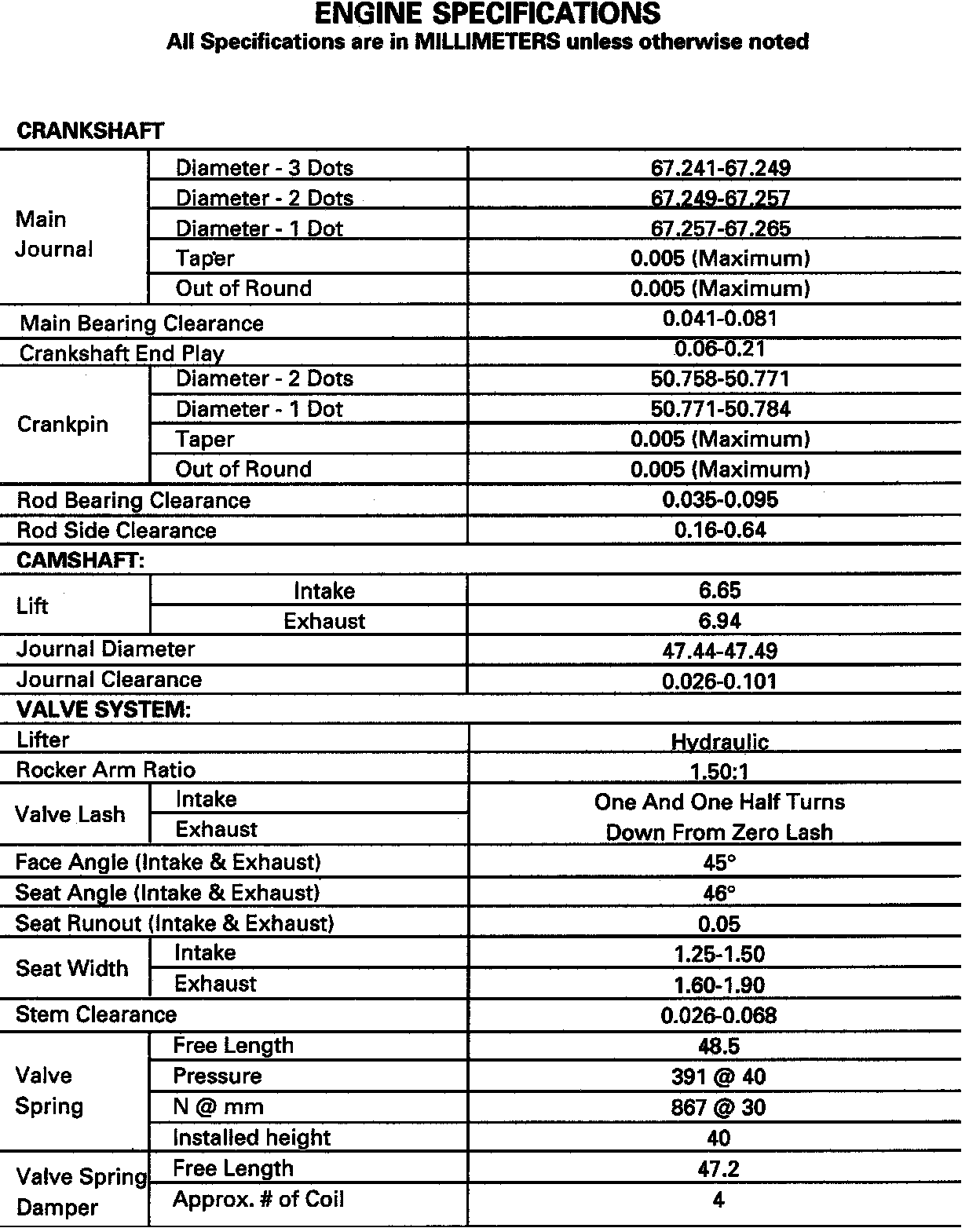 Engine Rebuild Specifications
