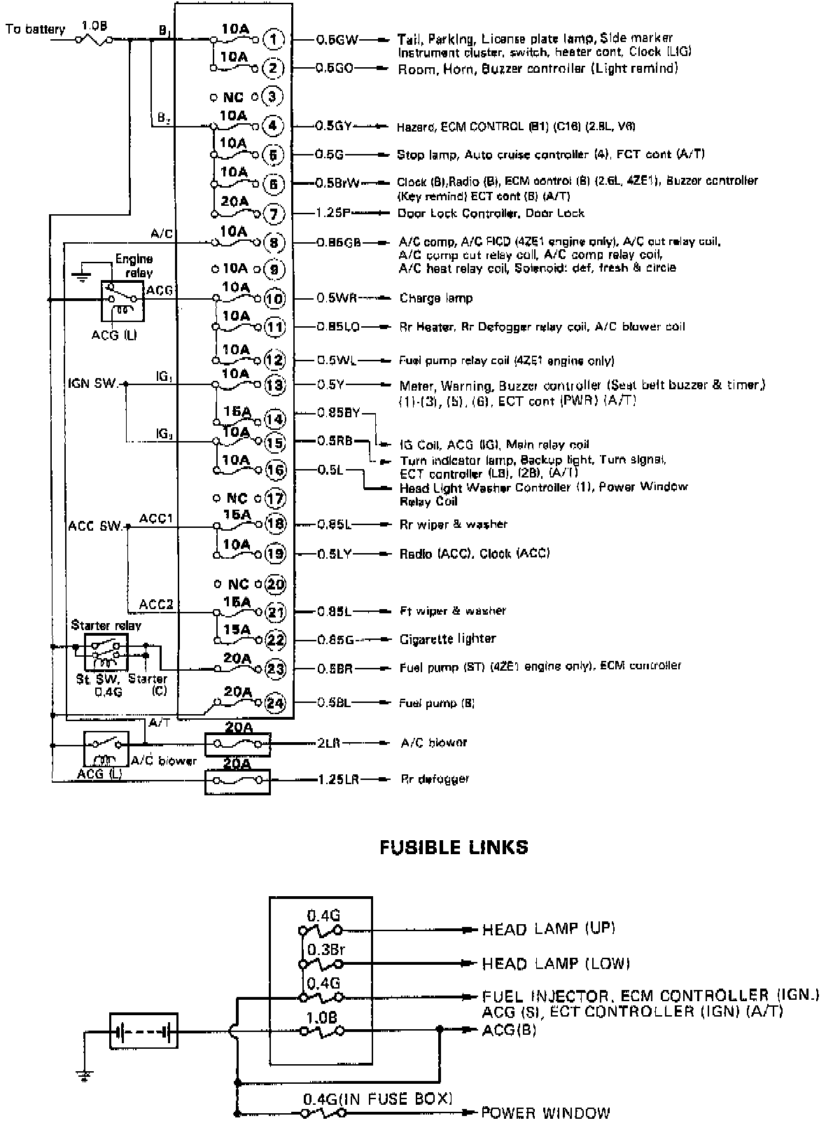 Fuse Box Layout (2.8L):