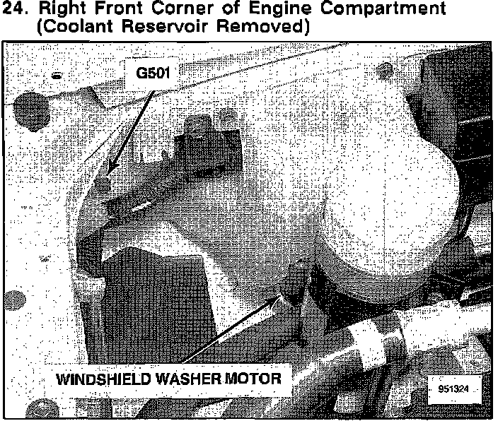 On R.F fender apron, near windsheild washer reservoir.