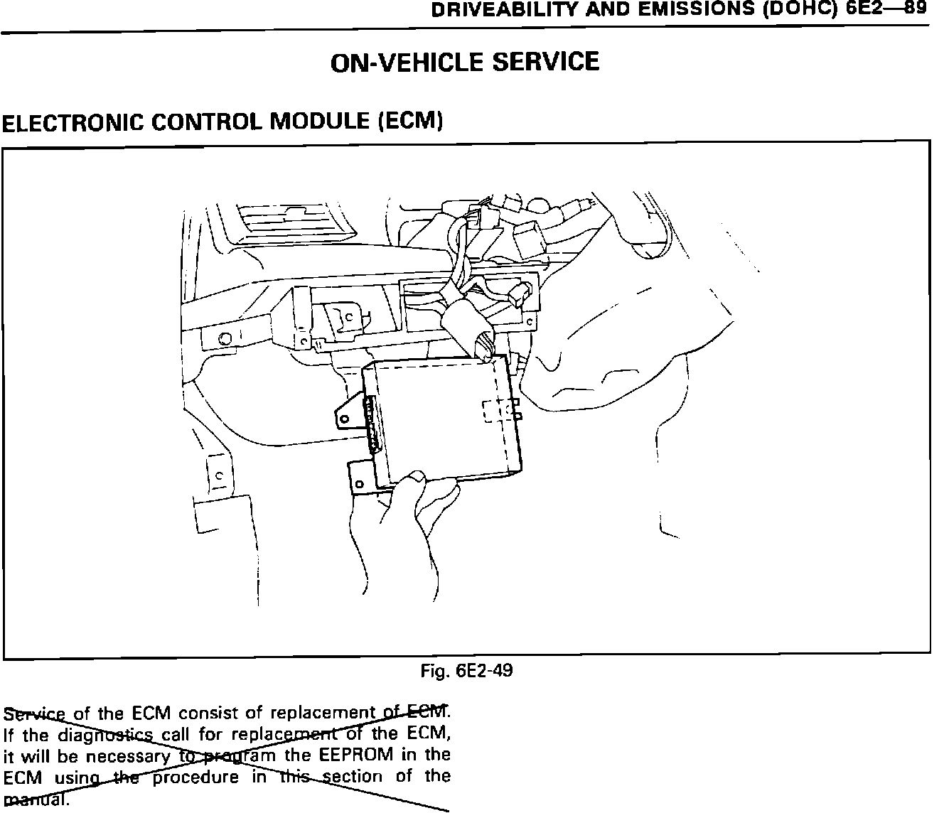 The ECM can only be replaced as a complete unit. There are no serviceable parts in the ECM. Replacement ECM units contain EEPROMs that have already been programmed.