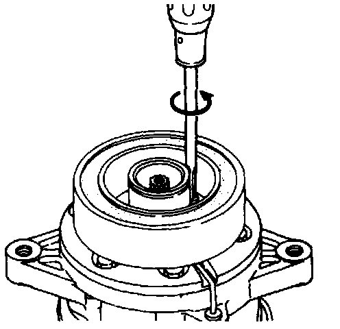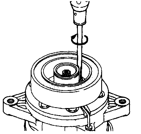 - Using holder (J-7624) to prevent the magnetic clutch armature from rotating.