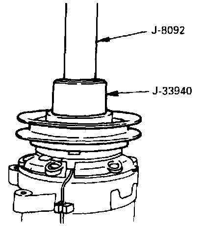- Using pulley installer (J-33940) and drive handle (J8092) to install the magnetic clutch pulley.