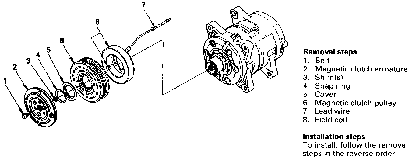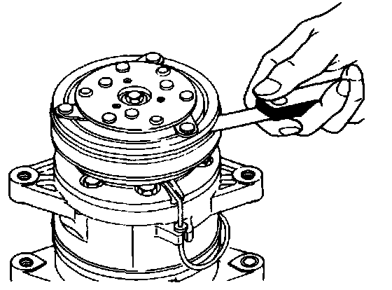 - Install the magnetic clutch armature to the compressor drive shaft together with the original shim(s).