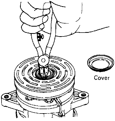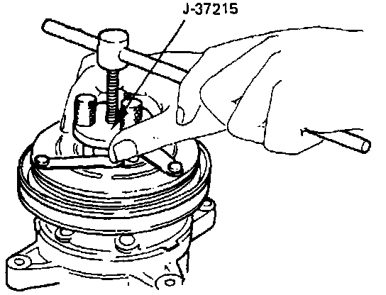 - Using clutch plate remover (J-37215) to remove the magnetic clutch armature.