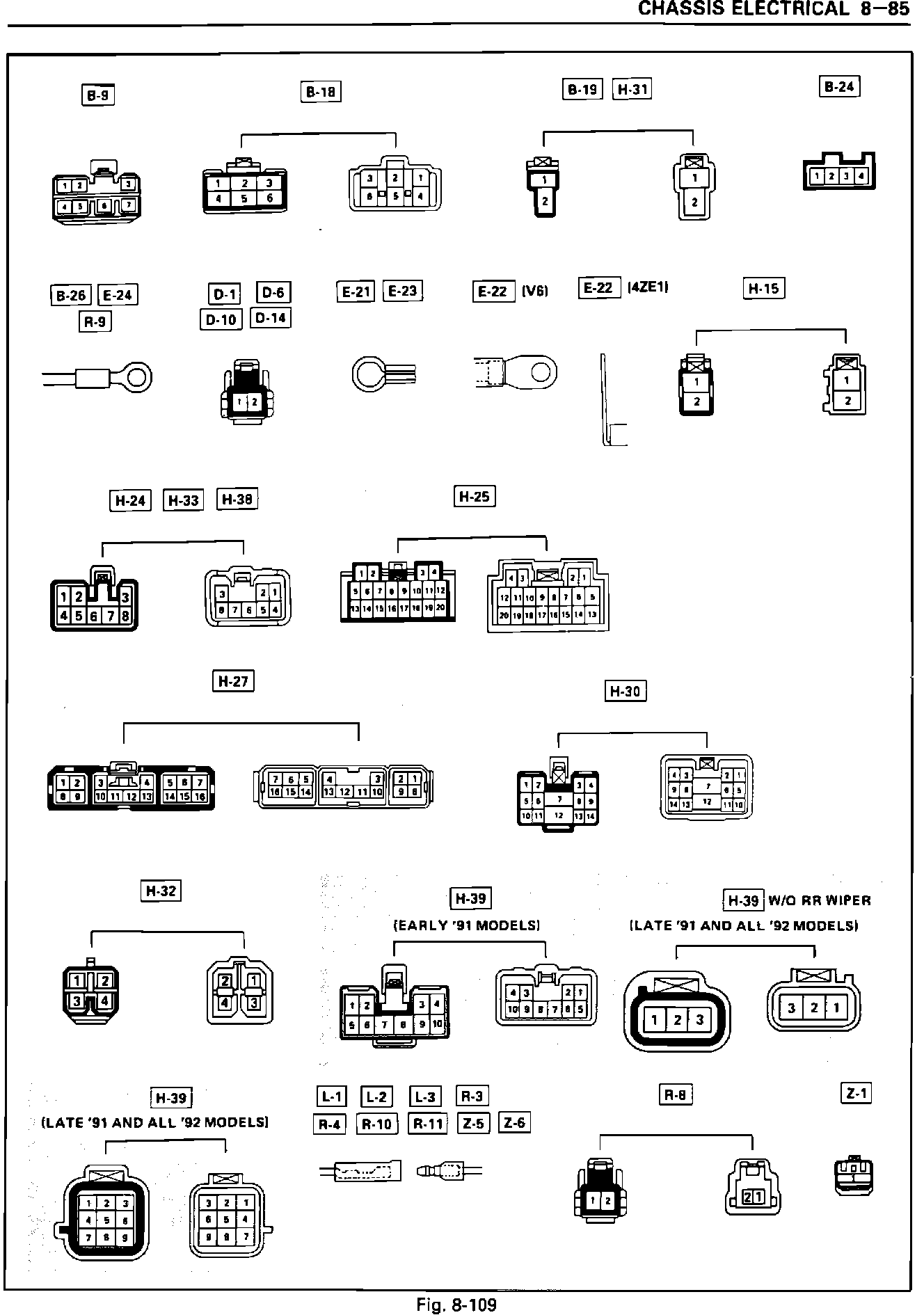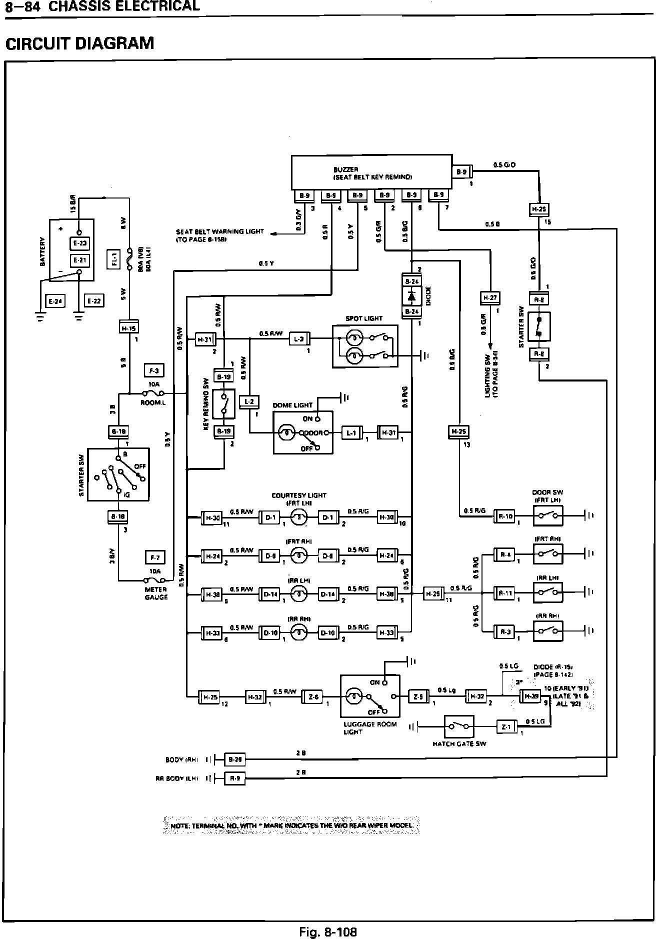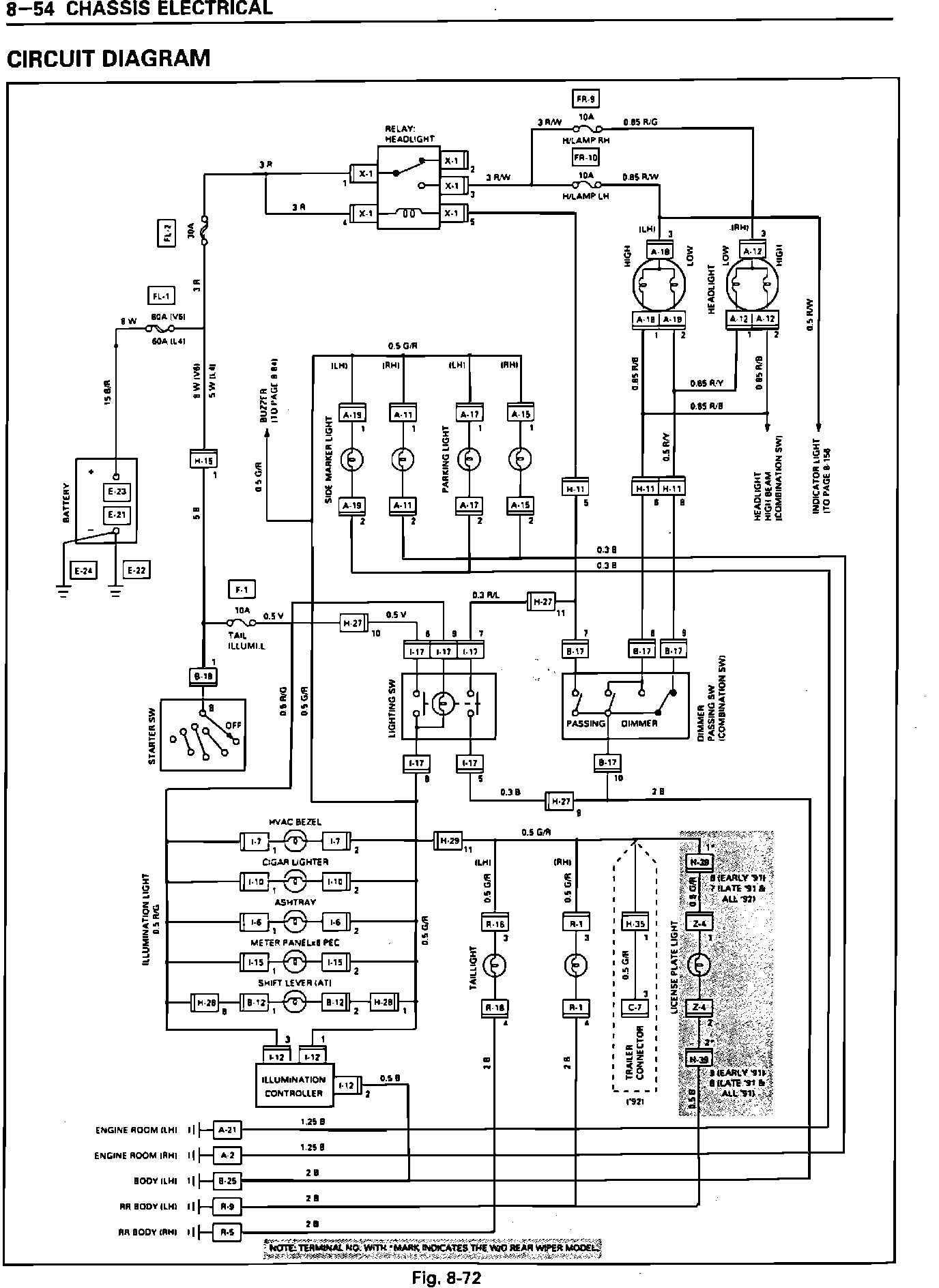 ^ Page 8-198 ('92 models only): Circuit for the heater relay and alternator is added.
