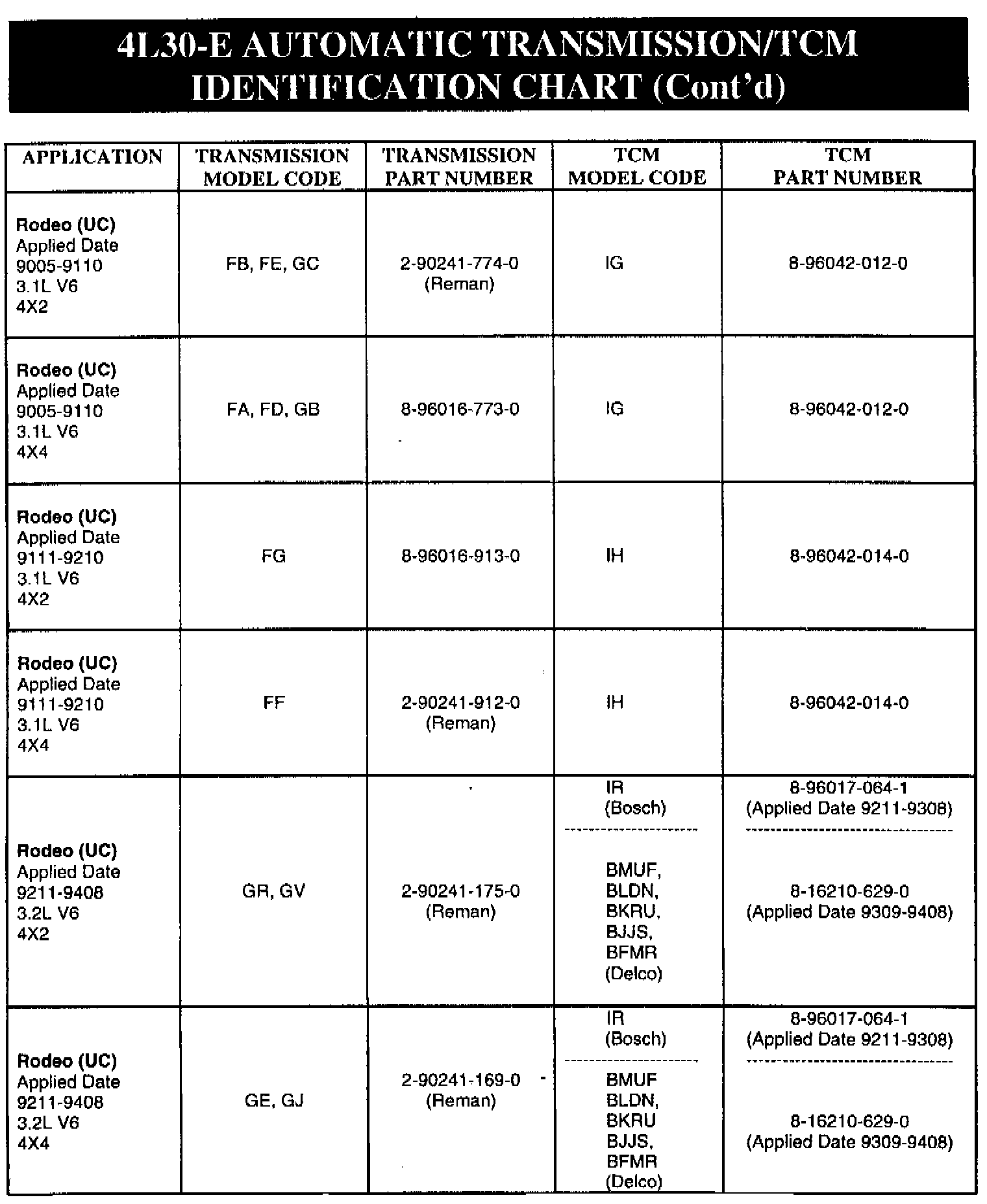1990-91 Trooper II (KT), 1992-95 Trooper (UX), 1991-95.5 Rodeo (UC) models equipped with 4L30-E automatic transmission.