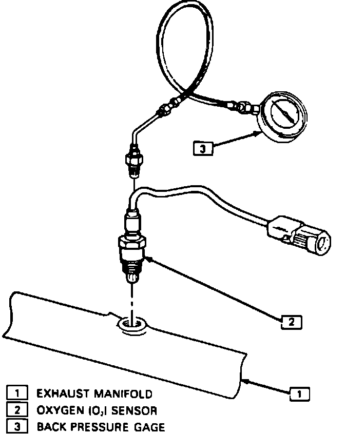 2. In place of the sensor, install a Boroughs exhaust backpressure tester (BT8515 or BT8603) or equivalent