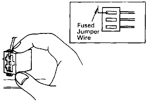 3. Disconnect wide open throttle switch harnesses at connector, insert a fused jumper wire into the idle terminal (upper), then make connections at the connector with the wire pulled part way out.