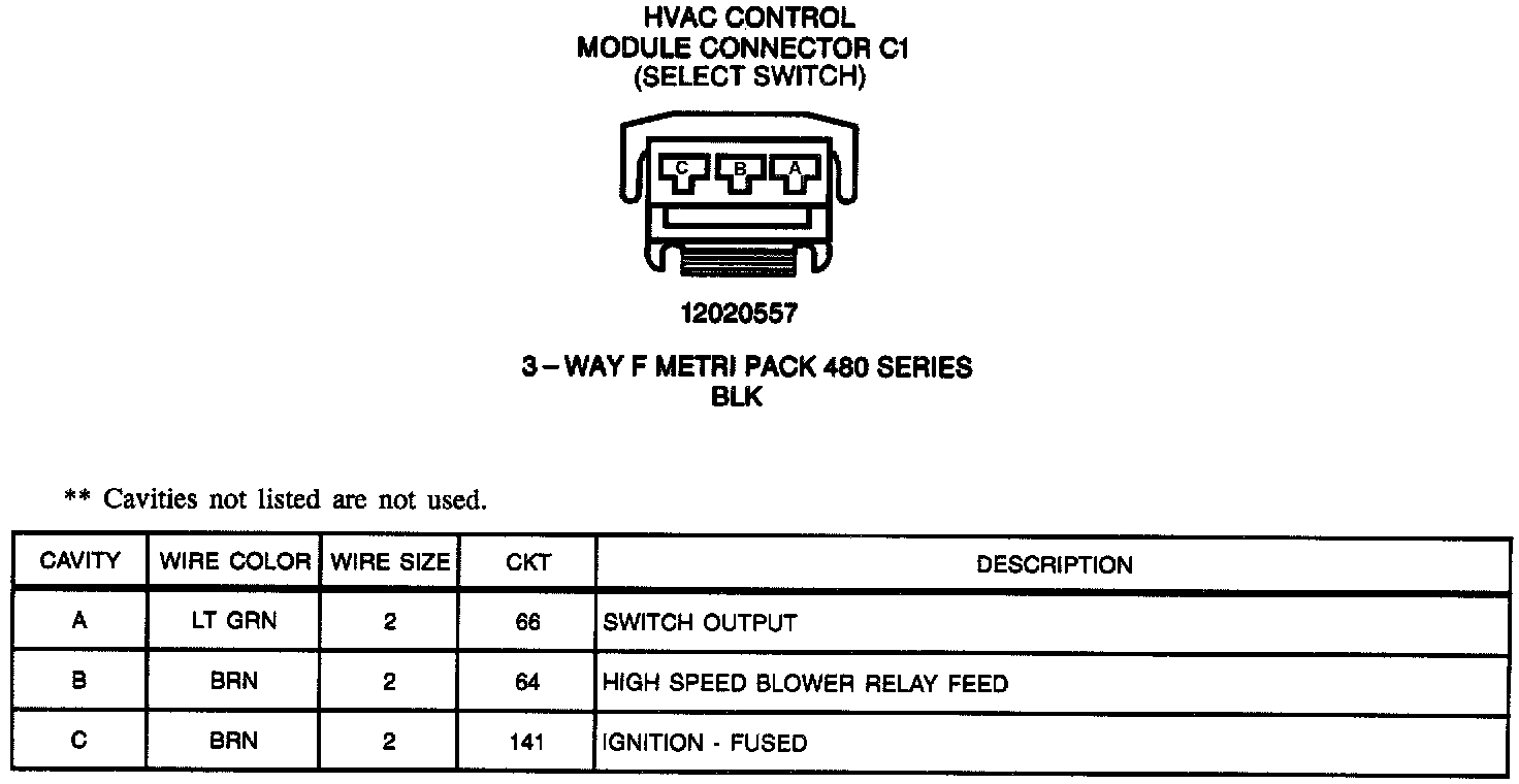 HVAC Control Module Connector C1 (Select Switch):