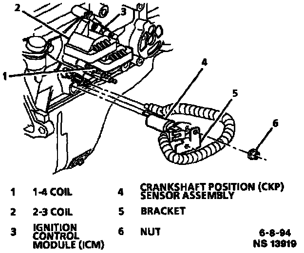 Figure 6B-1 - Sensor to Crankshaft Reluctor Relationship, Ignition Coil Assembly,: