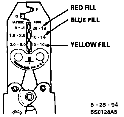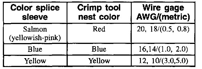 Select the proper splice sleeve according to wire size. The splice sleeves and tool tests are color coded (refer to above Chart).