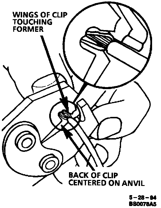 ^ Center the back of the splice clip on the proper anvil and close the crimping tool to the point where the former touches the wings of the clip.