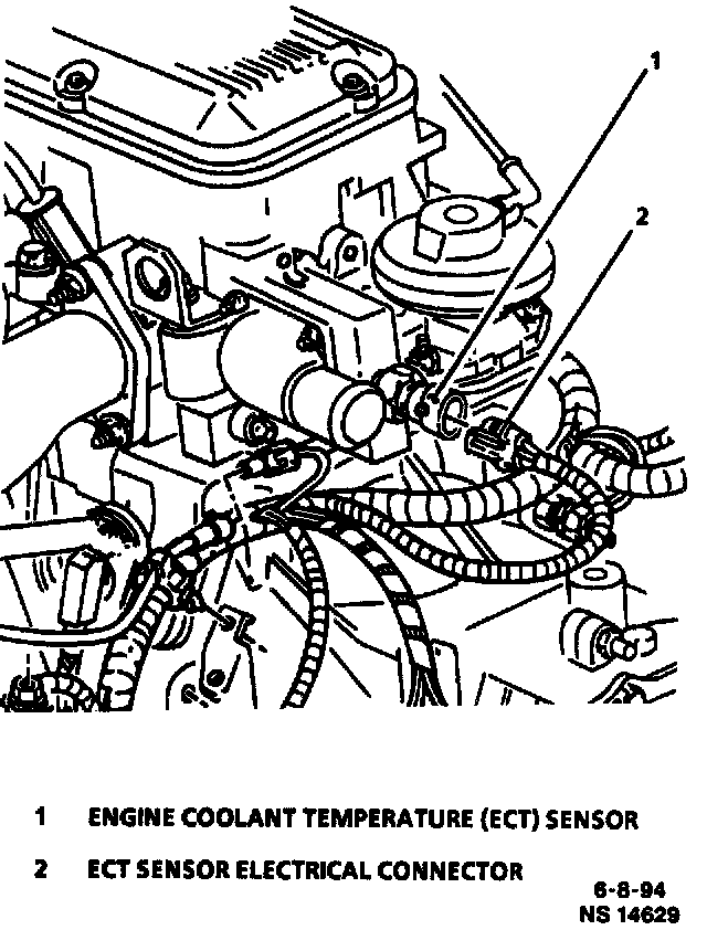 NOTE: Care must be taken when handling an Engine Coolant Temperature (ECT) sensor. Damage to the ECT sensor will affect proper operation of the fuel injection system.Figure 3A-9 Engine Coolant Temperature (ECT) Sensor: