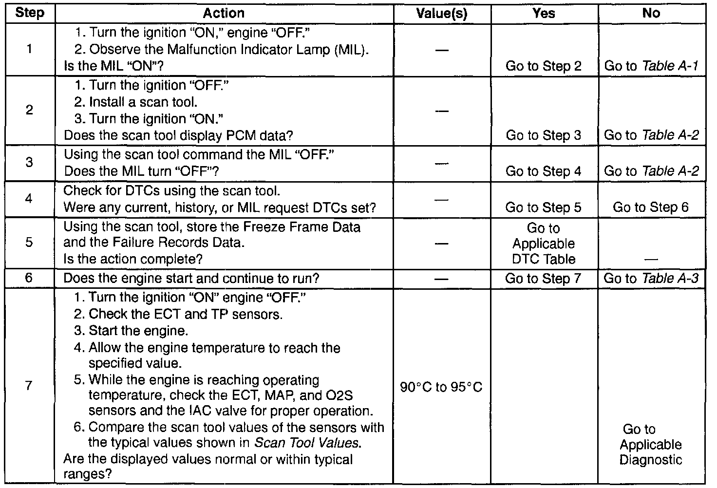 Numbers below refer to the step numbers on the Diagnostic Table.