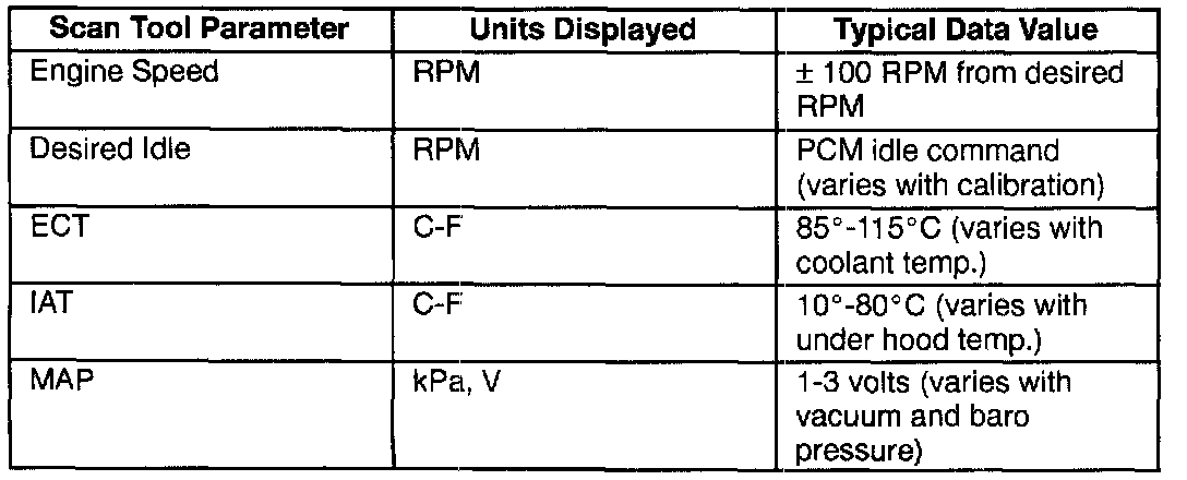 Engine Speed is computed by the Powertrain Control Module (PCM) from the fuel control reference input. It should remain close to desired idle under various engine loads with the engine idling.