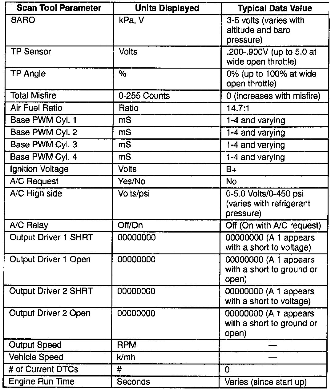 Scan Tool Data - Engine 2 Data Idle/Upper Radiator Hose Hot/Closed throttle/Park or Neutral/"Closed Loop"/ACC. "OFF"(2 Of 2):
