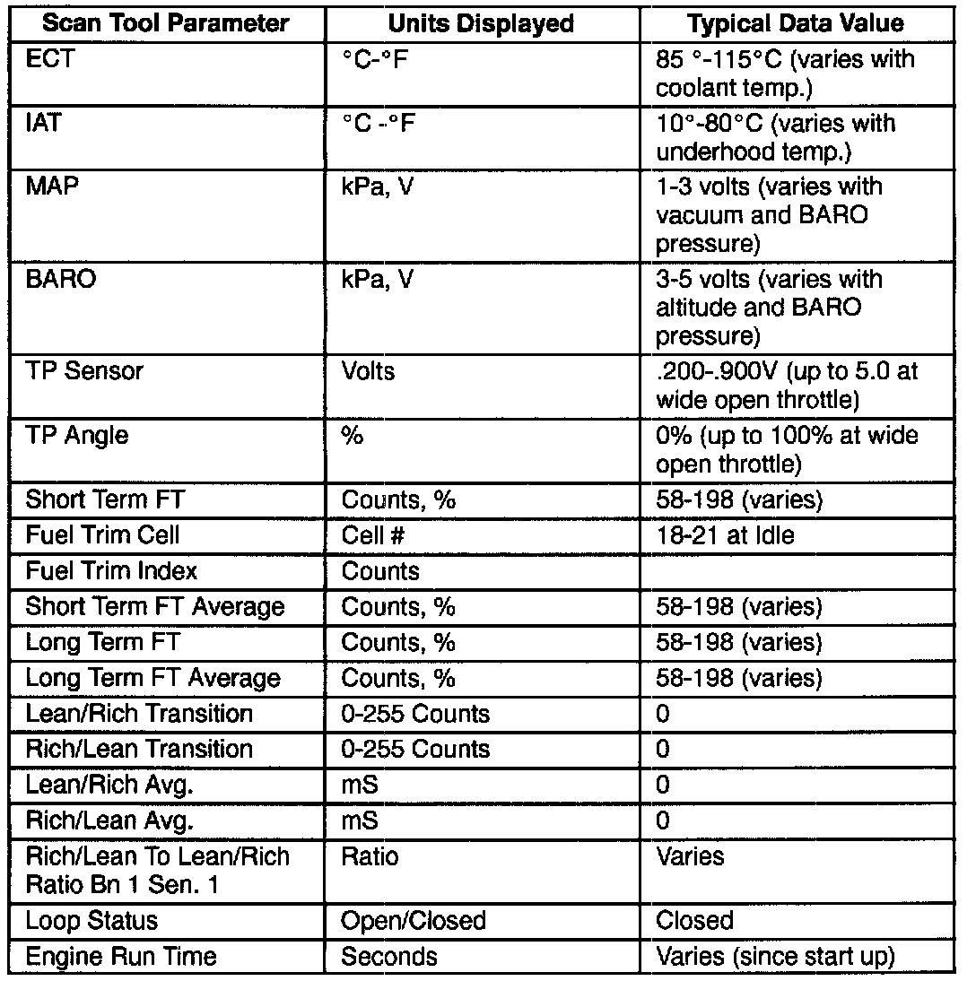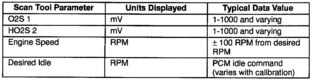 Scan Tool Data - Specific Eng., O2S Data Idle/Upper Radiator Hose Hot/Closed throttle/Park or Neutral/"Closed Loop"/ACC. "OFF"(2 Of 2):