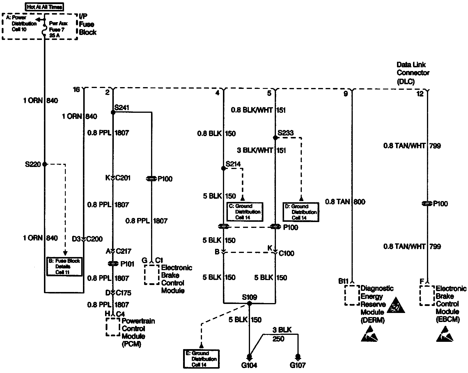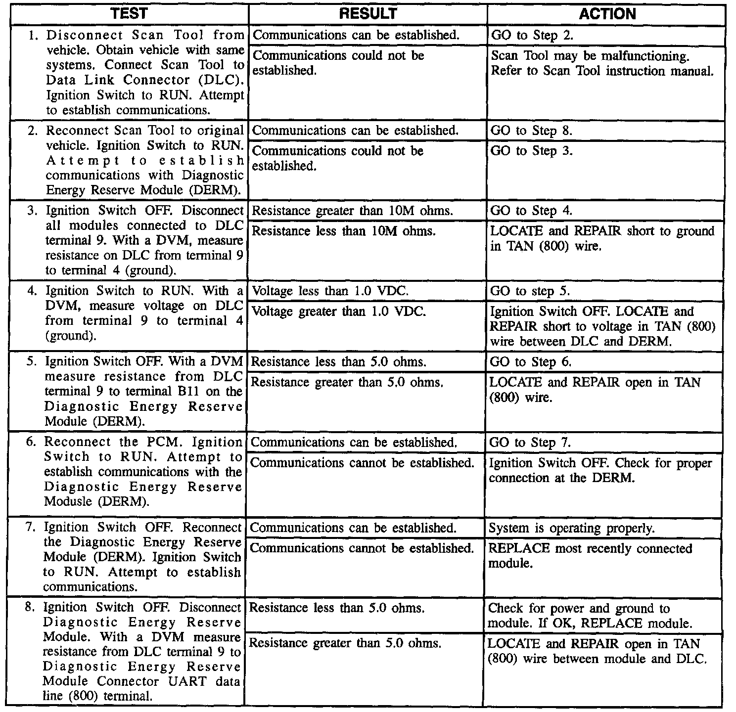 There are two data lines access with a Scan Tool. Circuit 800 (TAN) UART data line allows the Diagnostic Energy Reserve Module to communicate with the Scan Tool. Circuit 1807 (PPL) CLASS-2 data line allows the Powertrain Control Module to communicate with a Scan Tool.
