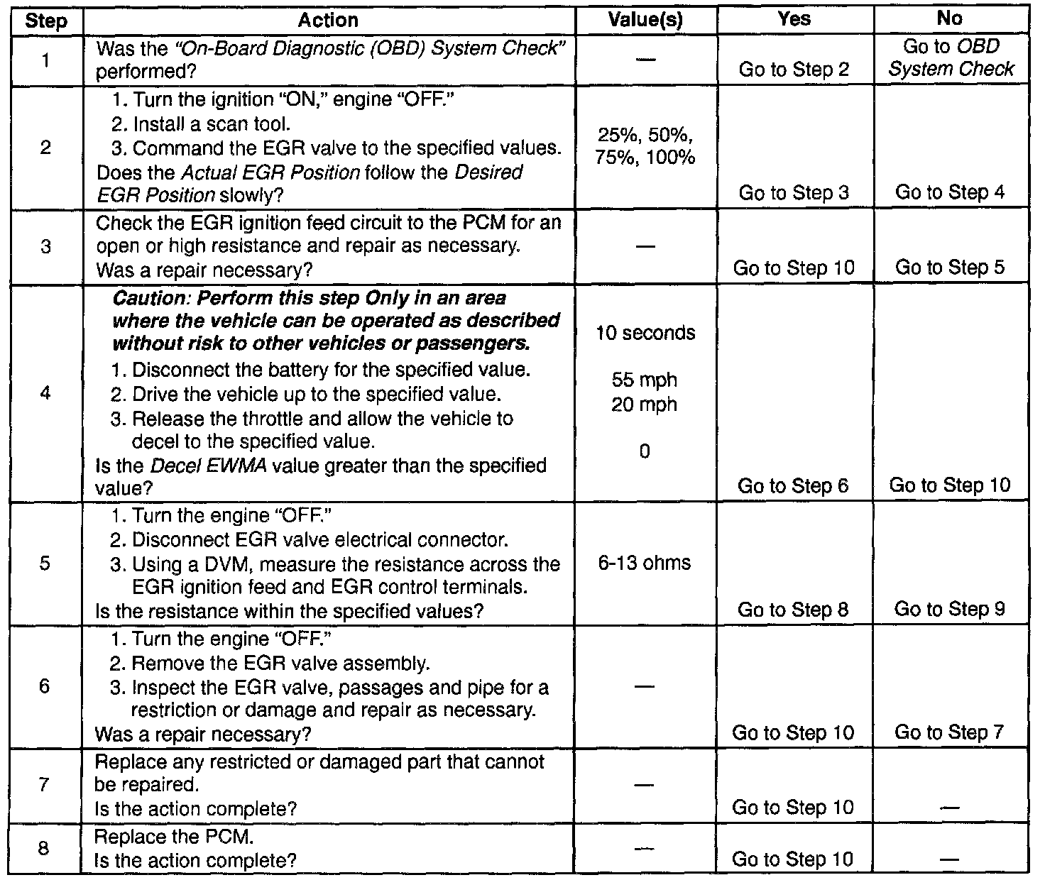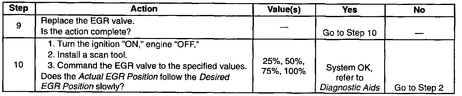 2. commanding the EGR valve open determines whether the EGR system can control the EGR valve accurately. The Actual EGR Position should follow the Desired EGR Position very quickly. If the Actual EGR Posit/on appears to have to catch up to the Desired EGR Position, the valve is considered lazy or slow.