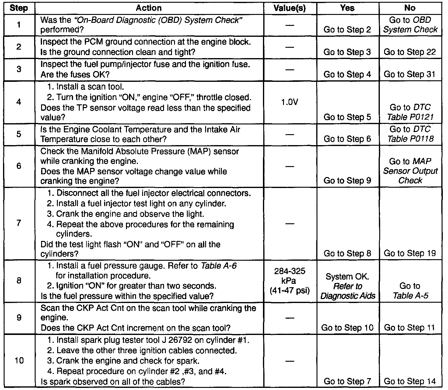 Table A-3 - Engine Cranks But Will Not Run (2 Of 3):