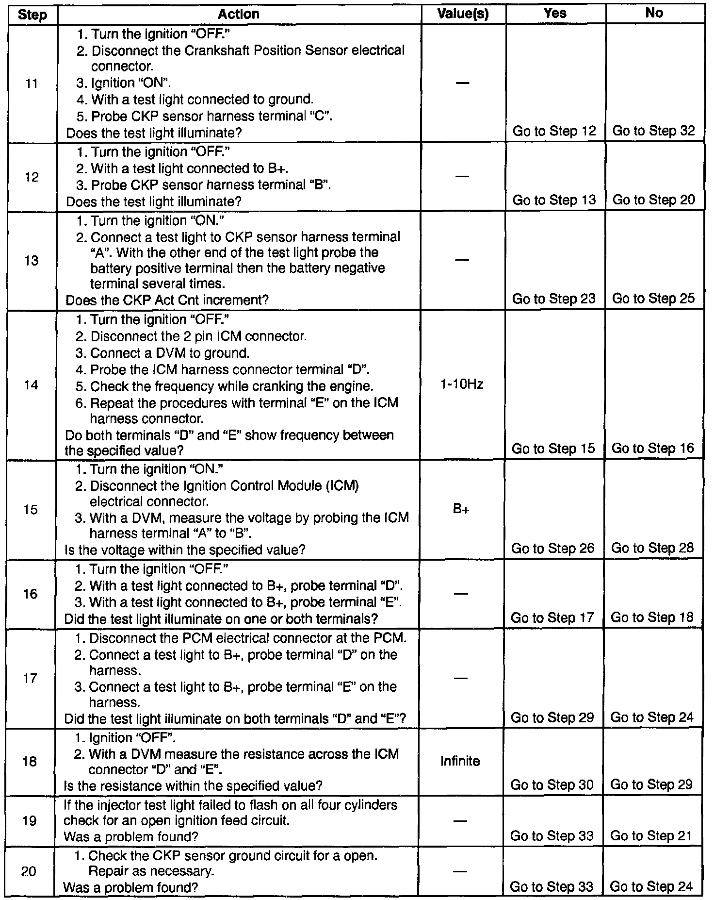 11. Battery voltage should be available at terminal "C" of the CKP sensor harness, and terminal "B" should be a good ground.