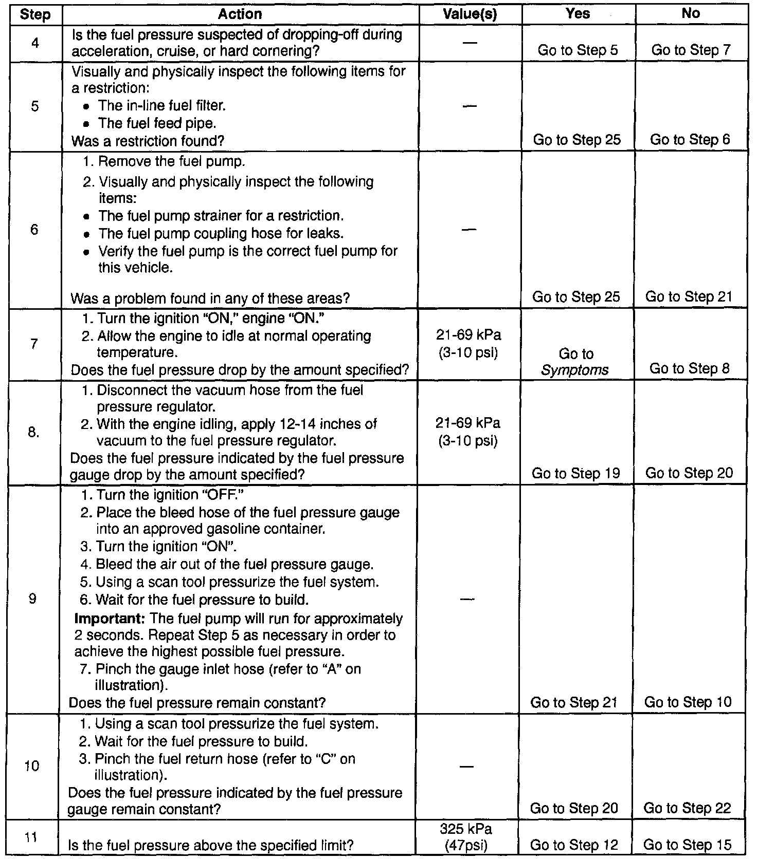 12. This test determines if the high fuel pressure is due to a restricted fuel return pipe or if the high fuel pressure is due to a faulty fuel pressure regulator.
