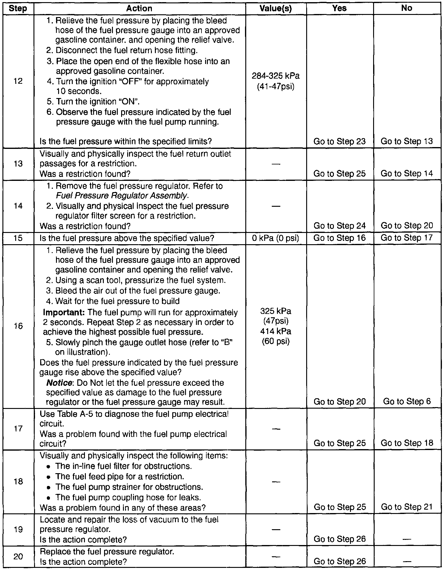 Table A-6 - Fuel System Diagnosis (4 Of 4):