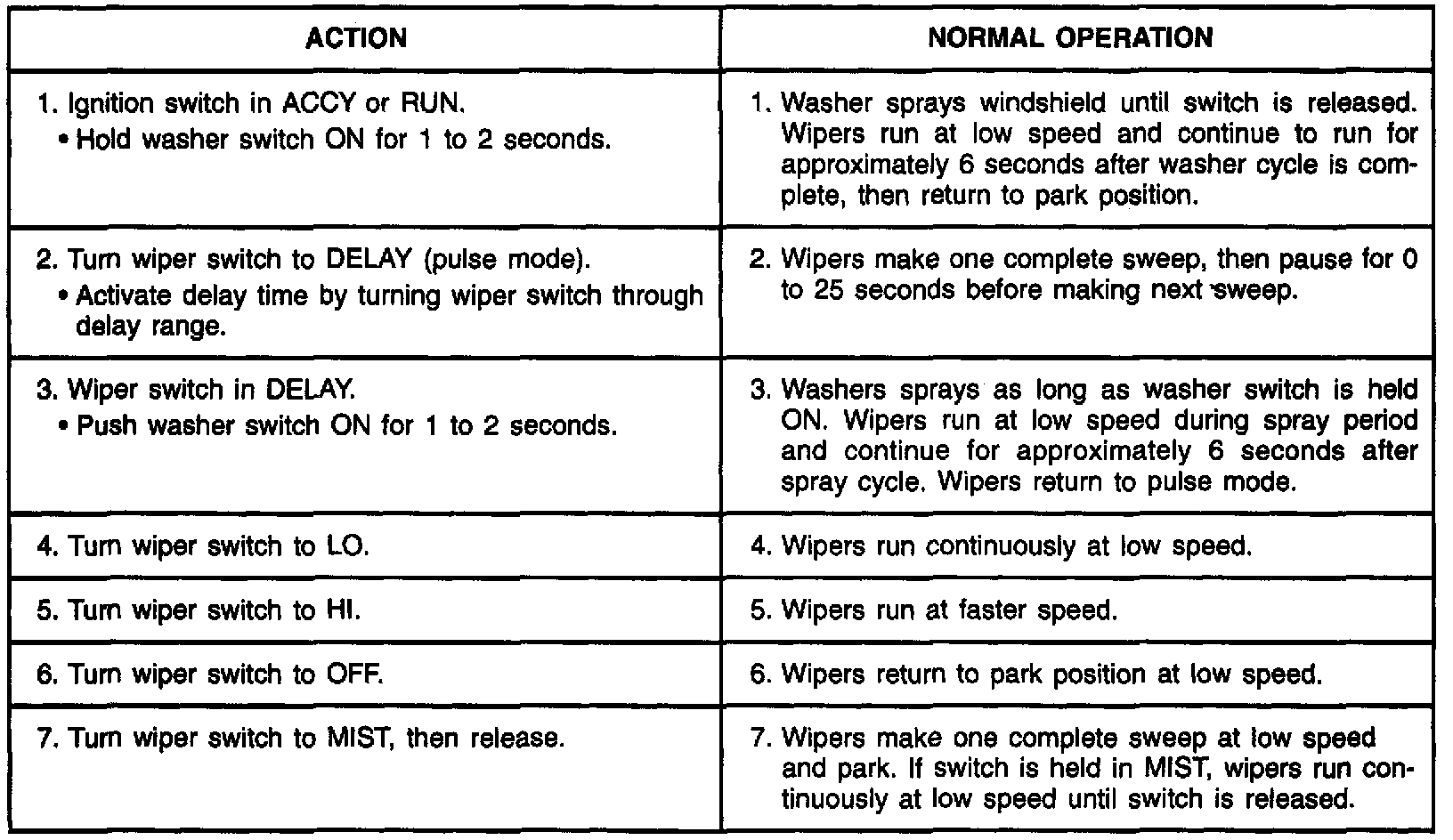 Pulse Wiper/Washer System Check