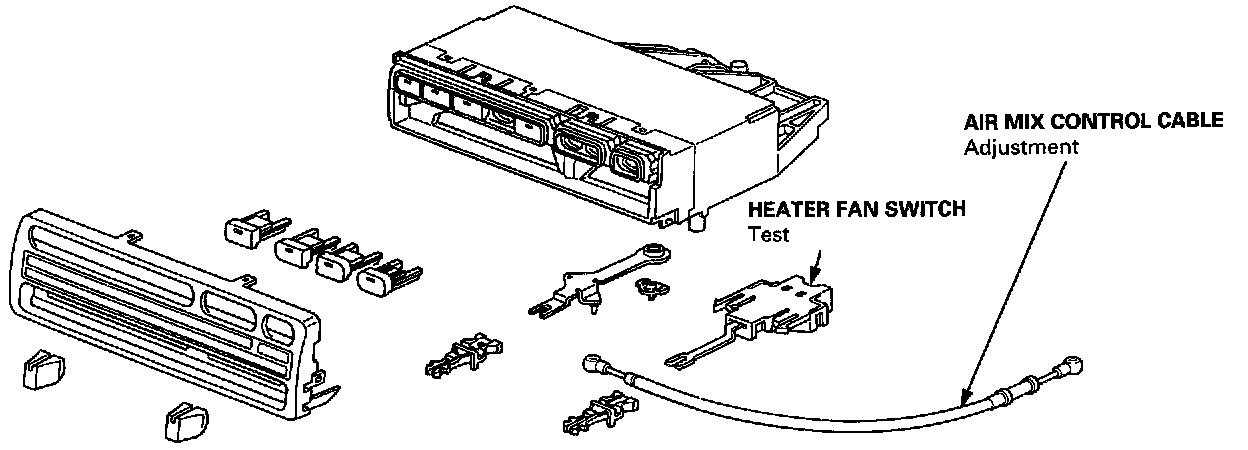 5. Install in the reverse order of removal, and adjust the air mix control cable at the heater unit. If necessary, adjust the heater valve cable.