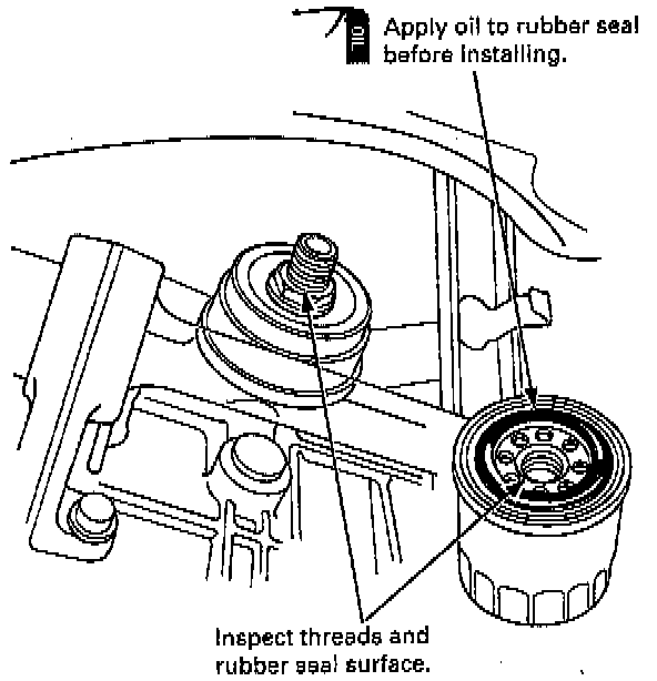 2. Inspect the threads and rubber seal on the new filter. Wipe off the seat on the engine block. Apply a light coat of oil to the filter rubber seal.