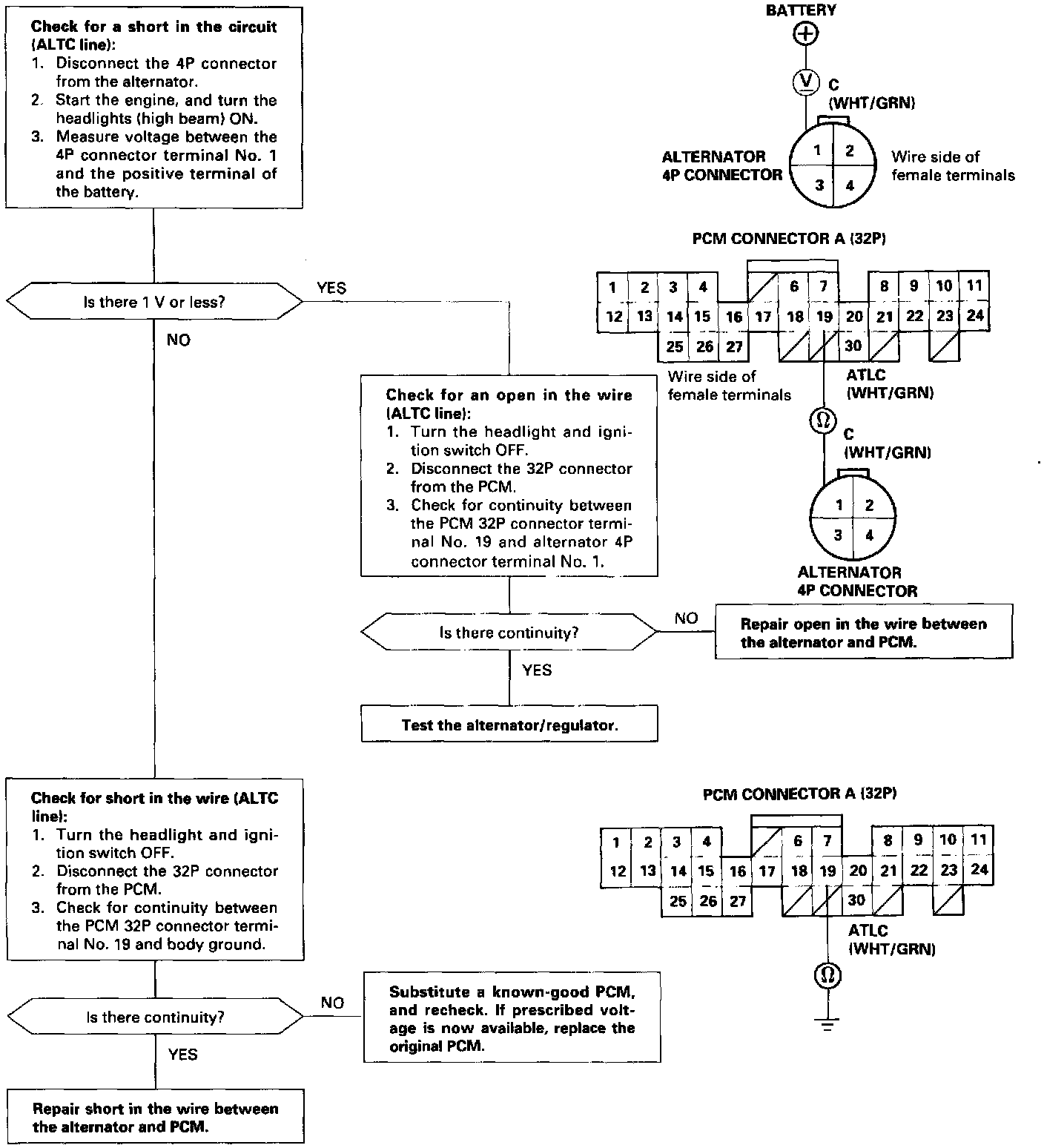 CAUTION: Be sure to use a voltmeter with its plus terminal connected to battery plus and its minus terminal to the 4P connector terminal No. 1.